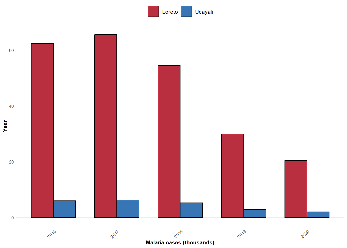 Between 2010 and 2023, the Peruvian Amazon has experienced accelerated deforestation and recurrent malaria outbreaks. Forest loss in Loreto, Ucayali, and Madre de Dios has modified local temperature regimes and humidity patterns, favoring Anopheles vector proliferation. Accessibility to diagnostic and treatment facilities remains highly heterogeneous, especially along riverine and forest-edge communities.