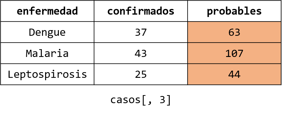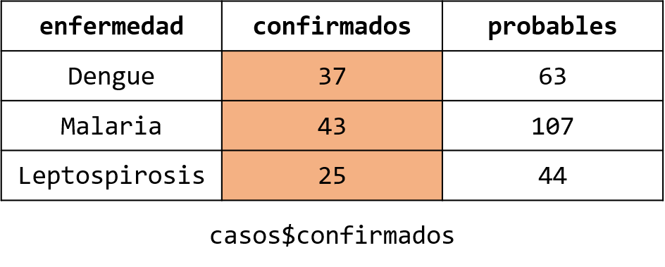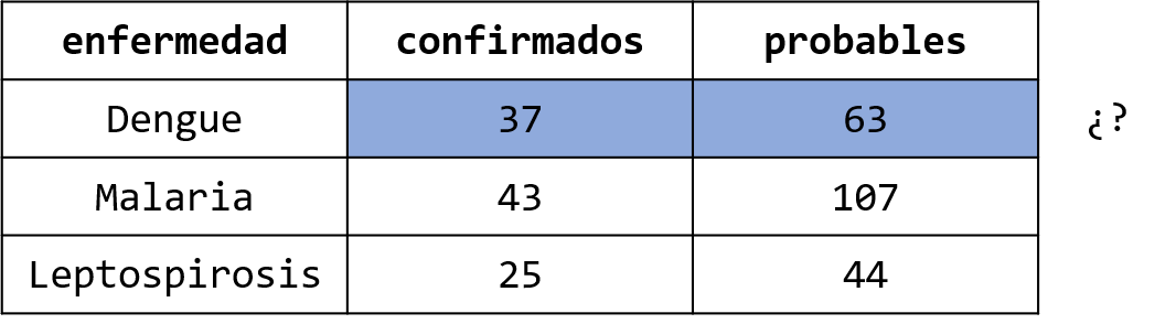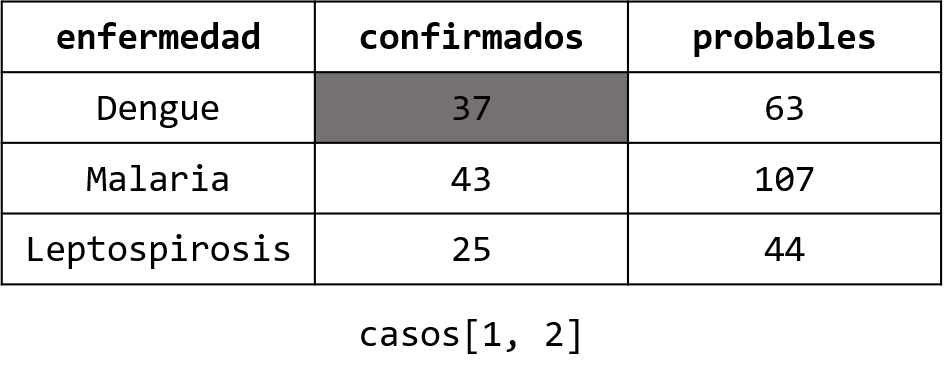 print(paste0("El número total de casos es: ", total))Una tabla es un arreglo de información en filas y columnas: