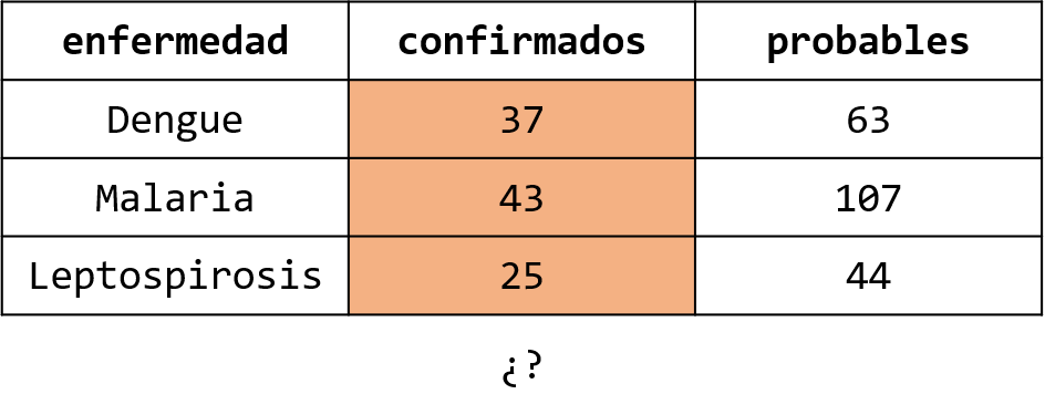 ¡Trabajemos ahora con datos! Escribamos un programa que nos permita ingresar el conteo de casos confirmado de tres enfermedades: