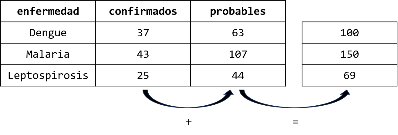 print(paste0("El número total de casos es: ", total))¿Qué pasaría si tuviéramos que sumar muchos valores? Definitivamente, tipear + muchas veces no es eficiente.