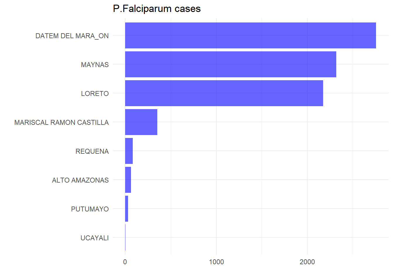 #> 6 1602010021 1 186 SANTA ISABEL POINT (-76.12383 -5.765671)# P. falciparum cases by province